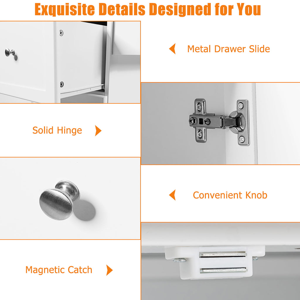 - Large Bottom Cabinet & 3 Drawers: There is a bottom cabinet aimed at providing large enough space for your all sorts of kitchen supplies, to help you keep a neat kitchen environment. 3-Position adjustable shelves inside allows you to customize storage space with great convenience. Additionally, you are capable of classifying items by means of 3 slide-out drawers.