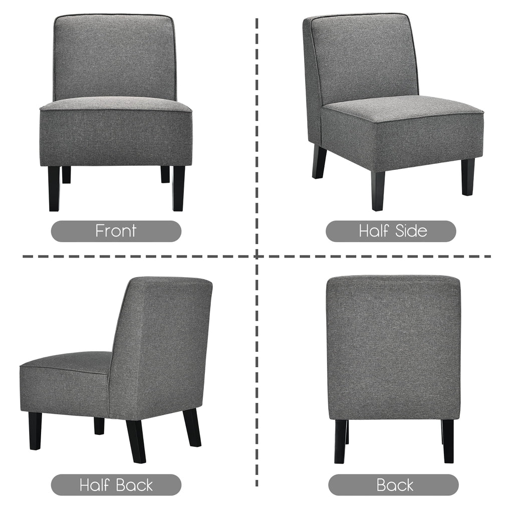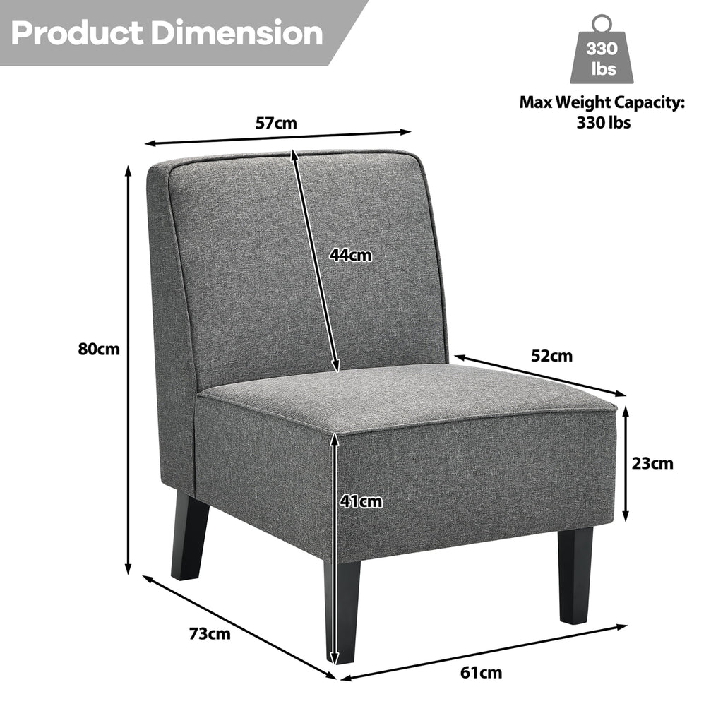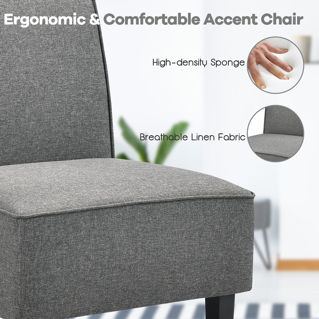 This modern and comfortable accent chair will be a perfect addition to your home! Supported by 4 rubber wood legs, this armless chair ensures great sturdiness and stability for long-lasting use. Besides, anti-slip foot pads are equipped to avoid accidental sliding and prevent your floor from scratching. Equipped with a sloped backrest and thick cushion, this ergonomic chair can provide you with the most comfortable seating experience. What's more, the breathable and soft linen cover can bring you a better touch and comfort. This multifunctional chair can be used as a leisure chair in the living room, a side chair in the reception room as well as a reading chair in study room. Enjoy your leisure time with this ergonomic leisure chair!