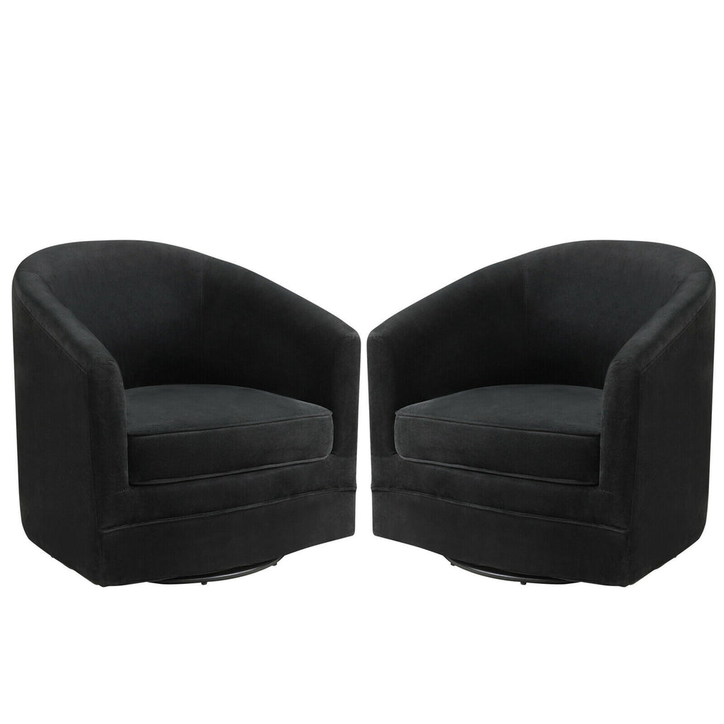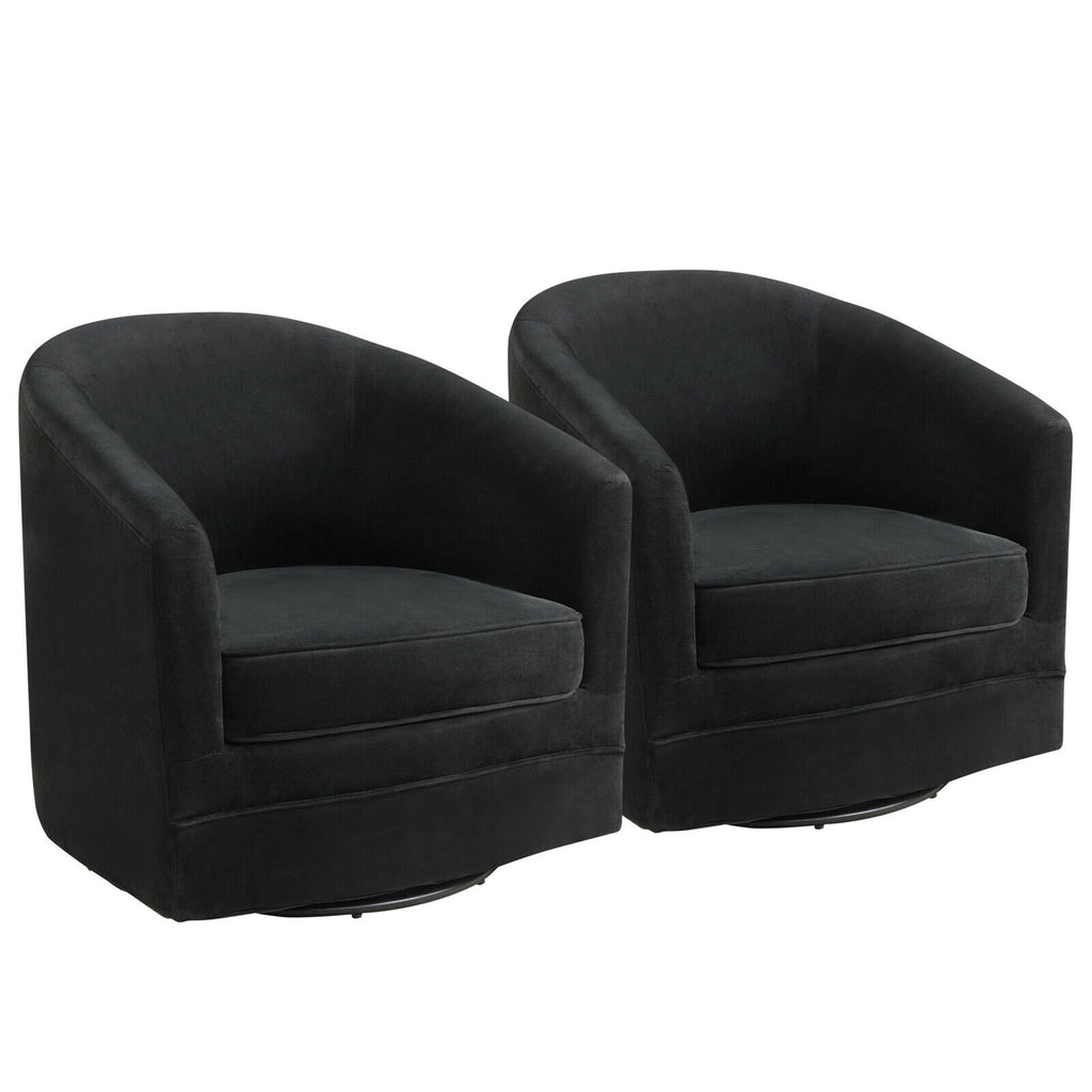 Add a leisure spot in your home with our swivel barrel accent chair! This accent chair has a classic round shape with a curved and angled back and an inclined armrest for ergonomic seating. The seat is upholstered with high-density sponge and elastic springto ensure comfortable sitting experience. Coveredwith skin-friendly velvet fabric, this singlesofa chair is soft to touch and provides higher degree of comfort. This accent armchair has a solid metal swivel base, which increases the overall sturdiness and allows 360-degree smooth swivel. With modern round barrel design, the chair issuitable for home, office, cafes and more. Moreover, the chair is coming fully assembled, which saves your time and energy.
